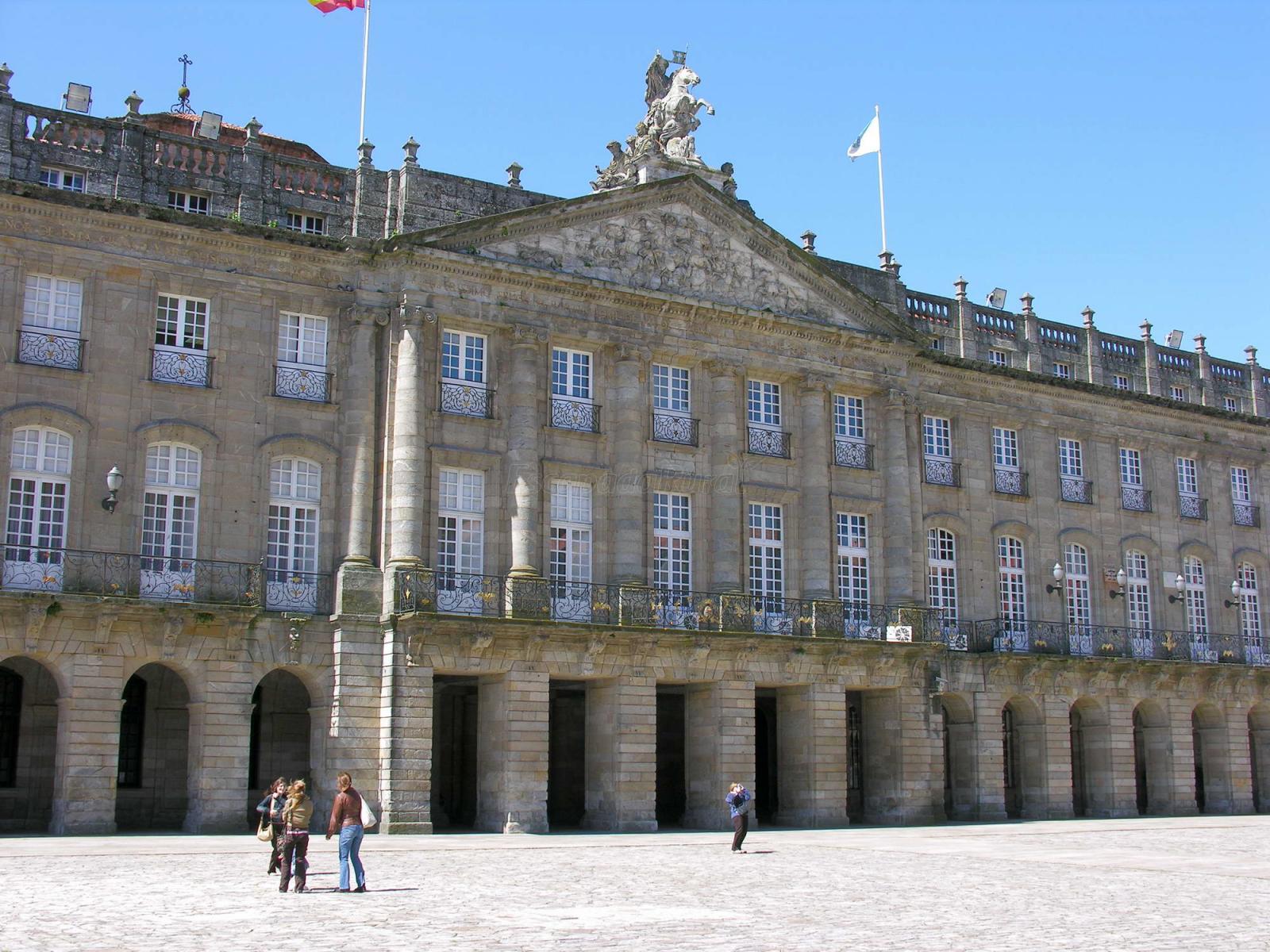 El Palacio está ubicado en la parte occidental de la Plaza del Obradoiro, que cierra por ese lado, frente a la fachada principal de la Catedral de Santiago. A su derecha se sitúa el Colegio de San Jerónimo, que hoy sirve de sede del Rectorado de la Universidad de Santiago; a la izquierda del palacio está el Hospital Real de los Reyes Católicos, en la actualidad Hostal. [Wikipedia]